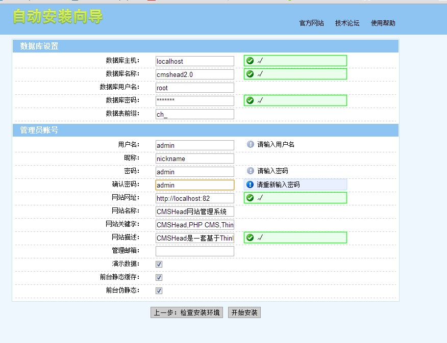 訪問(wèn)網(wǎng)址http://localhost:82/install,輸入相關(guān)配置即可完成安裝
