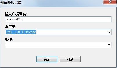 3、創(chuàng)建數(shù)據(jù)庫(kù)cmshead2.0(名稱隨意)。utf8編碼。